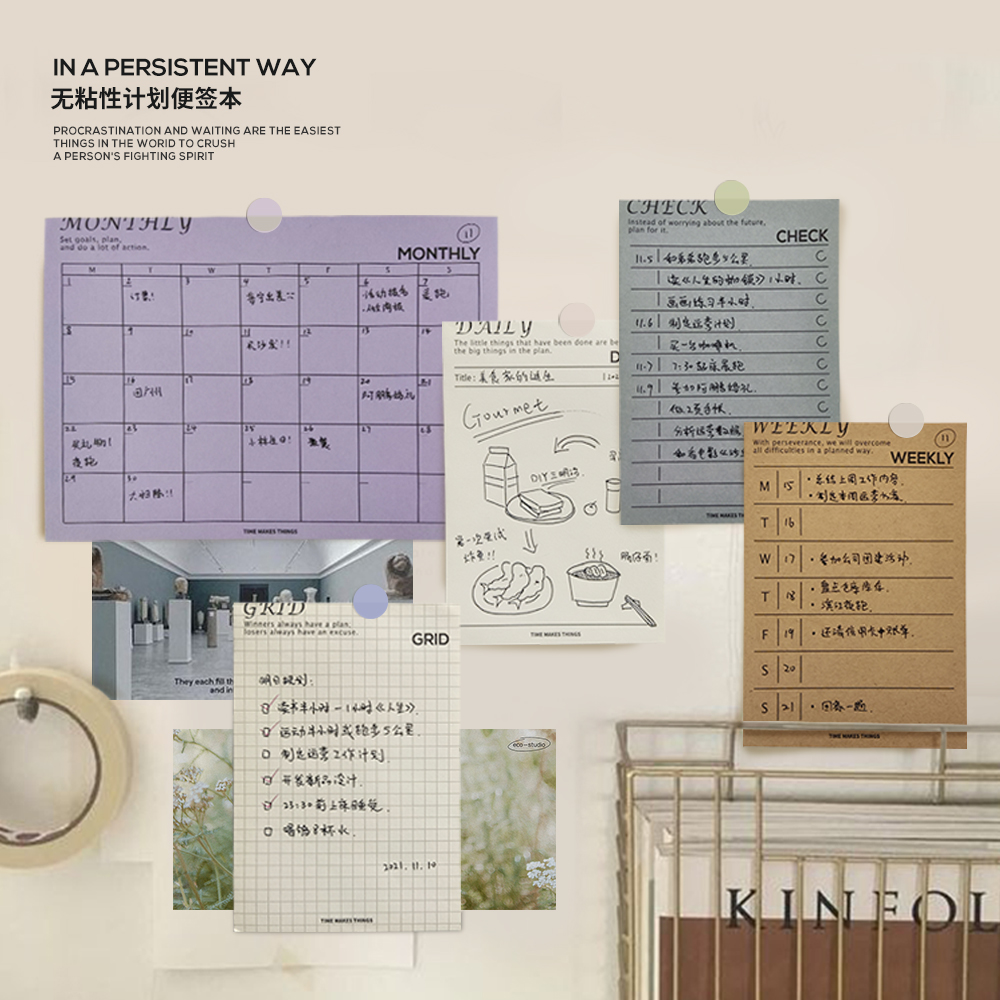 时间开物便签本易撕to do list打卡小本子空白方格随身计划本无粘