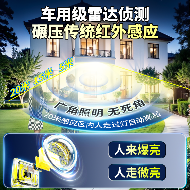 太阳能户外灯家用庭院灯新款大功率自动亮强光LED人体感应照明灯
