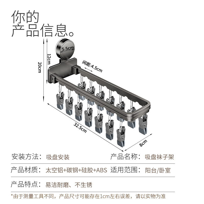 吸盘袜子晾晒架晾衣架阳台多夹子儿童家用折叠晒防风可折叠免打孔