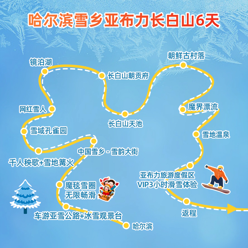 【纯玩小包团全含0自费】哈尔滨雪乡长白山旅游6天5晚温泉VIP滑雪