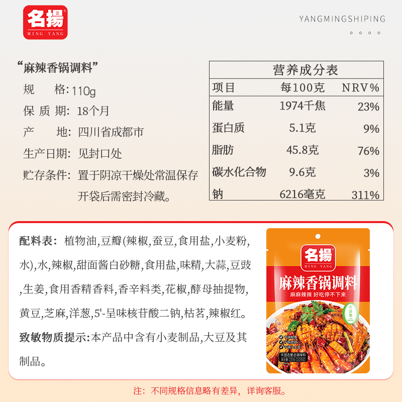 名扬麻辣香锅底料正宗家用酱香干锅酱调料包四川不辣酱料调味料