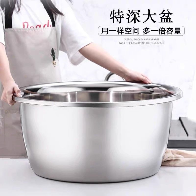 不锈钢大盆特厚特深厨房家用洗菜盆和面盆特大号面盆洗衣盆洗脚盆