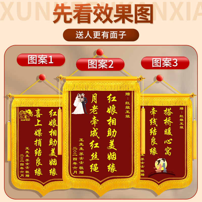 锦旗定做送红娘定制赠送给媒人月老感谢红娘媒婆婚姻介绍所婚介公司婚介中心姻缘彩色旗帜制作订制个性旌旗
