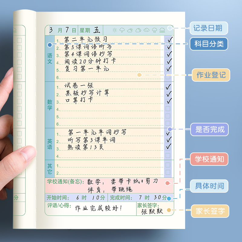 作业登记本小学生专用记作业本抄作业本一年级四五二三年级小学家庭作业记录本载计划小本子记事本家校联系本