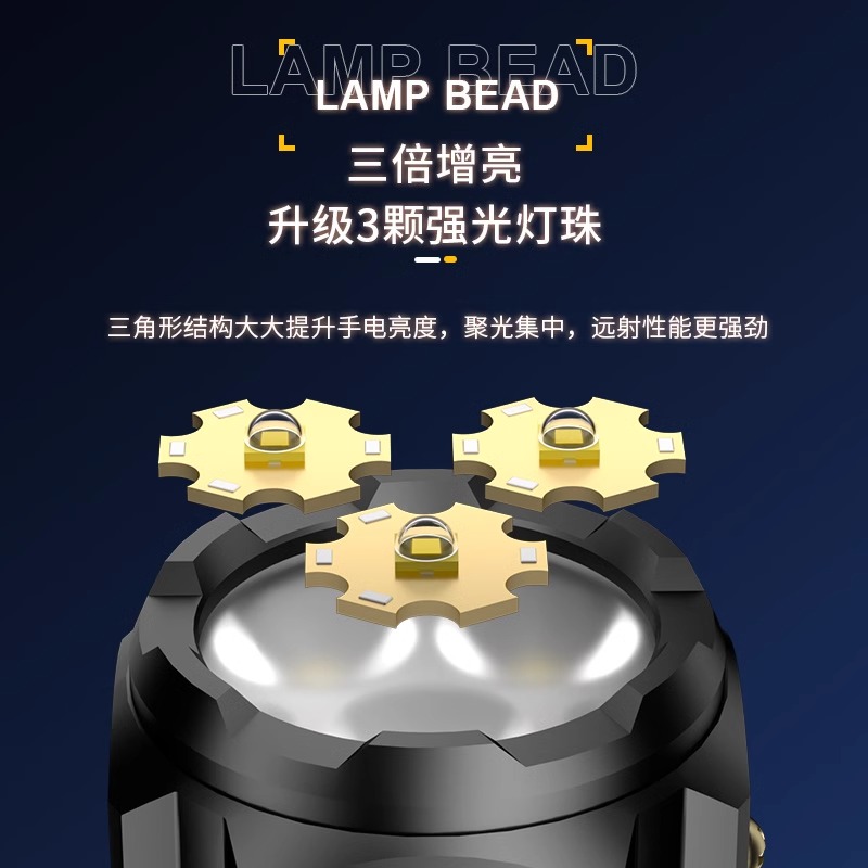天火三眼怪兽强光超亮手电筒远射户外充电变焦式迷你磁吸小型便携
