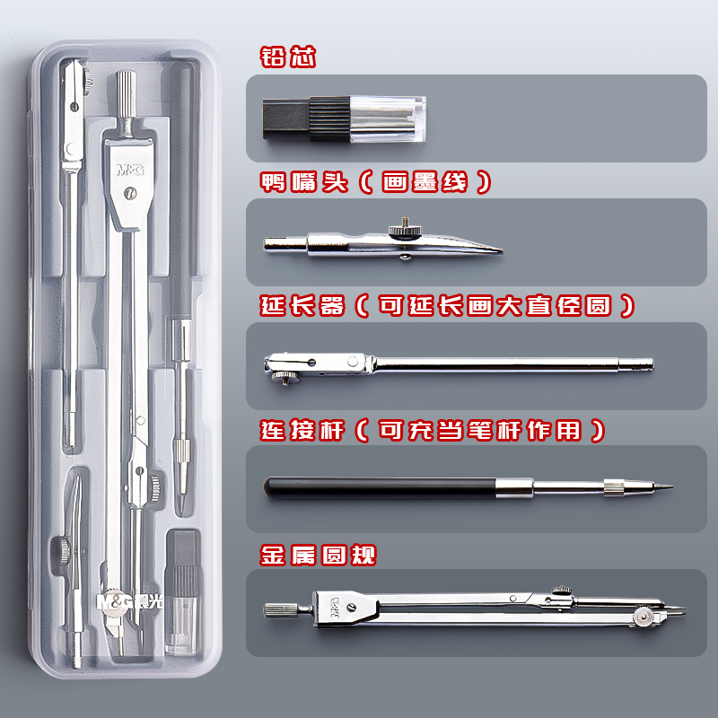晨光小学生专用金属圆规初中生六年级不锈钢儿童专业考试高中尺子2b教师用套装大直径套尺变准制图绘图工具
