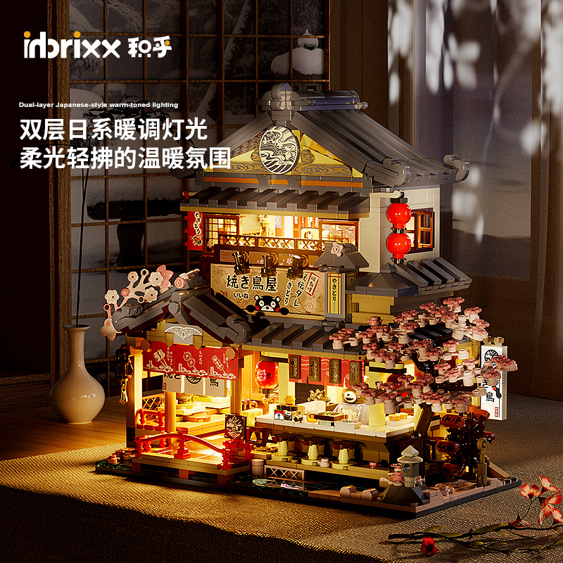 inbrixx积乎熊本熊烧鸟居酒屋街景积木模型拼装玩具摆件女生礼物