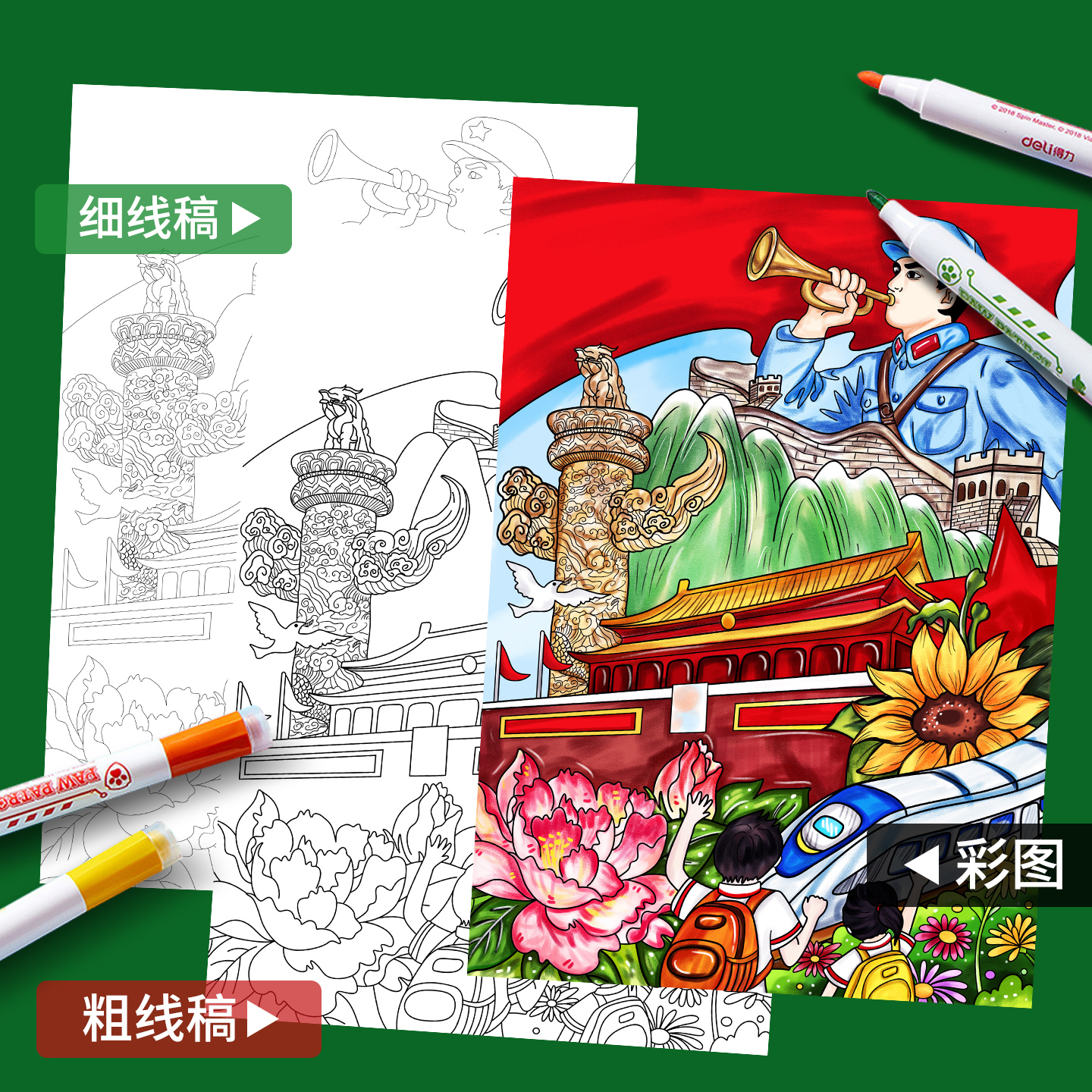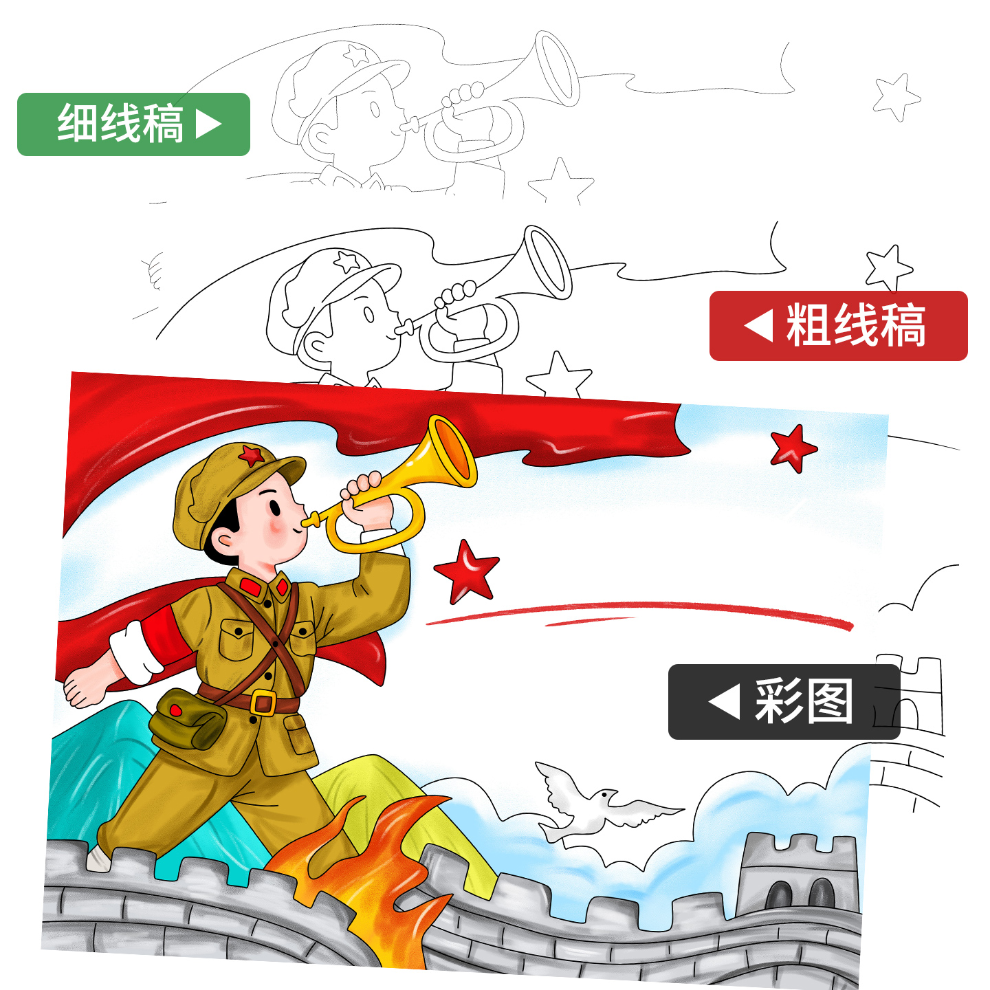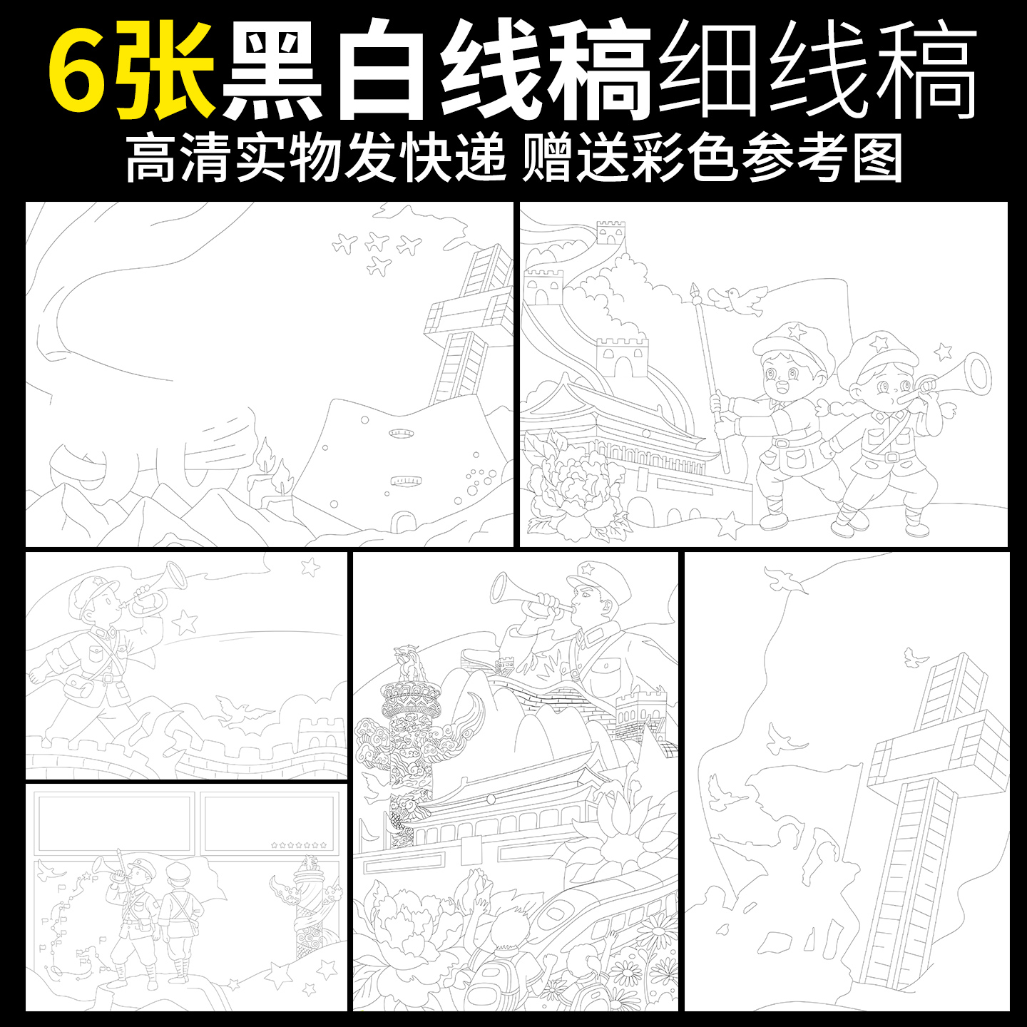 红色基因爱国主题精神手抄报模版小学生绘画4K半成品黑白线稿A38K