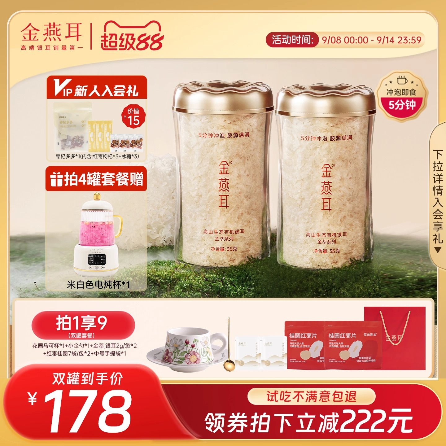 金燕耳古田有机银耳羹免煮5分钟冲泡即食金萃35g罐装干货旗舰店