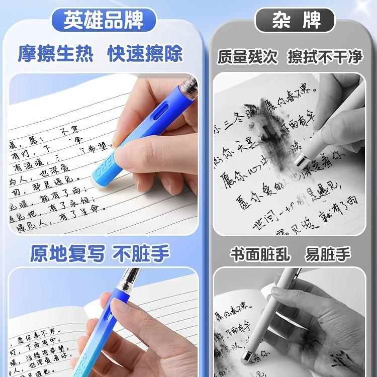 2024新品英雄牌钢笔热敏可擦钢笔小学生专用三年级练字橡皮擦小暗尖0.38可擦魔力擦晶蓝色墨蓝儿童男孩女孩