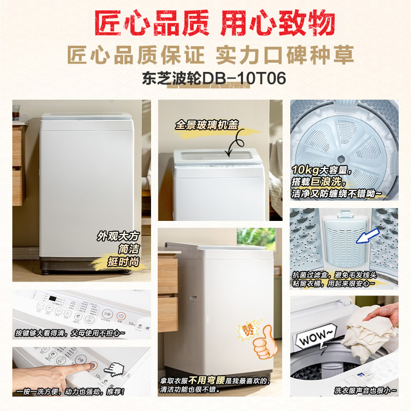 [国补不限地域]东芝8/10KG全自动小型洗衣机租房白色波轮以旧换新