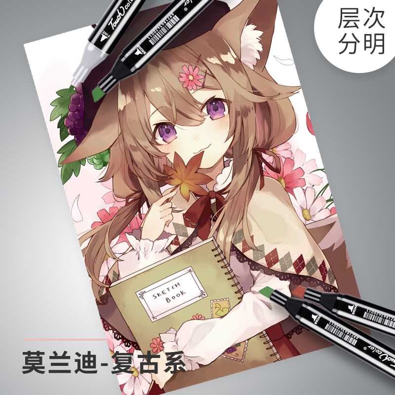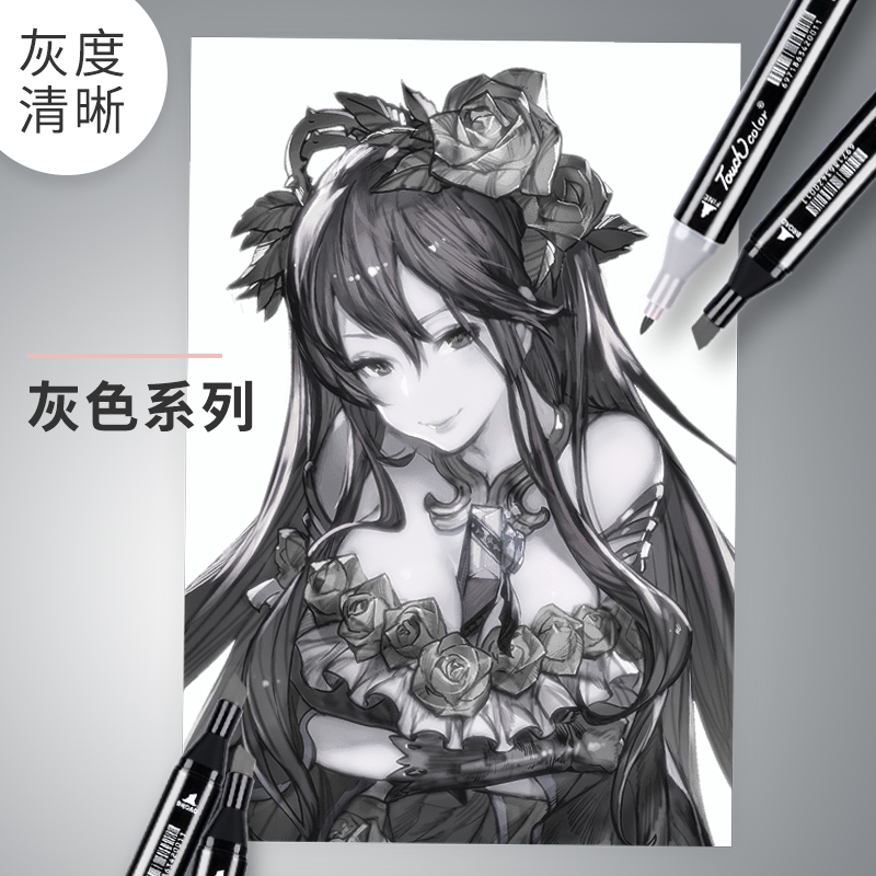 touchcolor莫兰迪色系马克笔套装双头酒精油性学生基础绘画马卡龙色初学者常用动漫肤色冷灰暖灰蓝灰12色