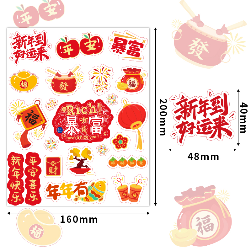 2024新年封口贴新年烘焙年货过年礼盒装饰不干胶水果标签贴纸自粘