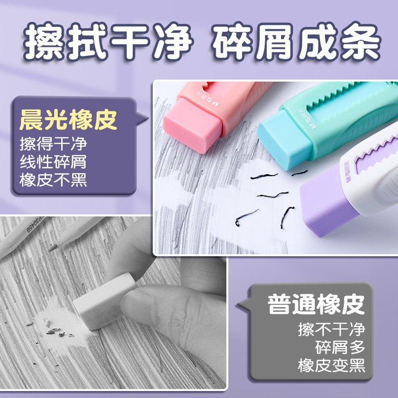 晨光推拉橡皮擦小学生专用无碎屑超干净不留痕擦字像皮儿童幼儿园擦铅笔字一年级无毒初中生推动橡皮文具用品