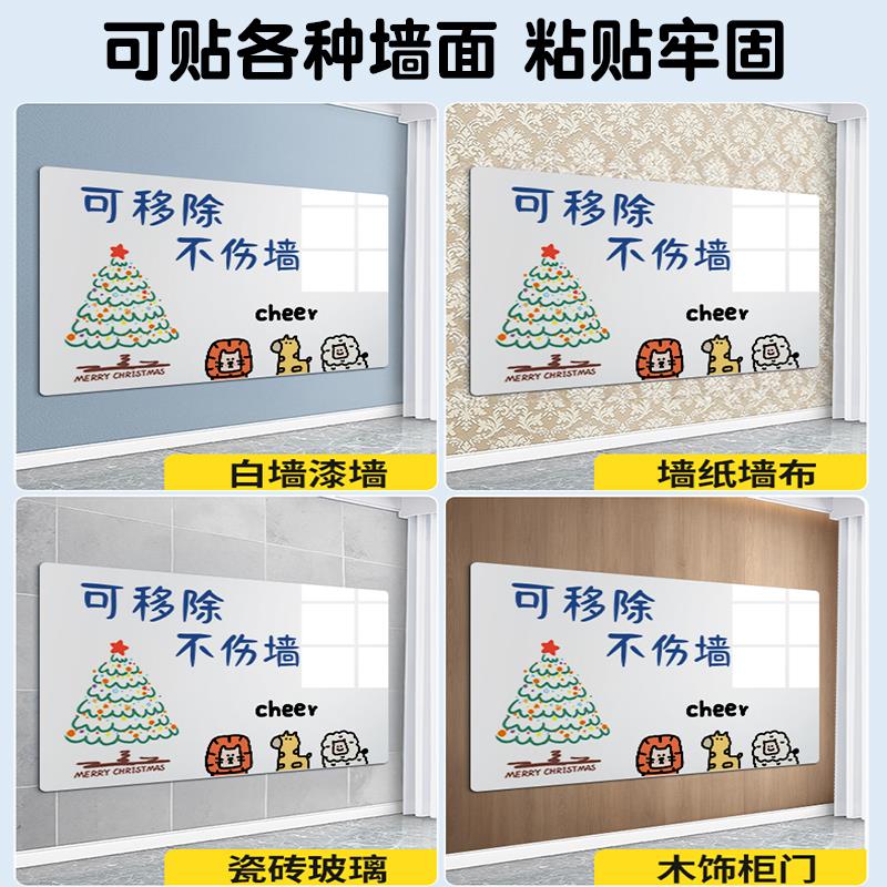 静电吸附白板墙贴儿童房墙面布置家用教学可擦小黑板可移除不伤墙磁吸白板涂鸦画画的墙壁贴纸展示记事写字板