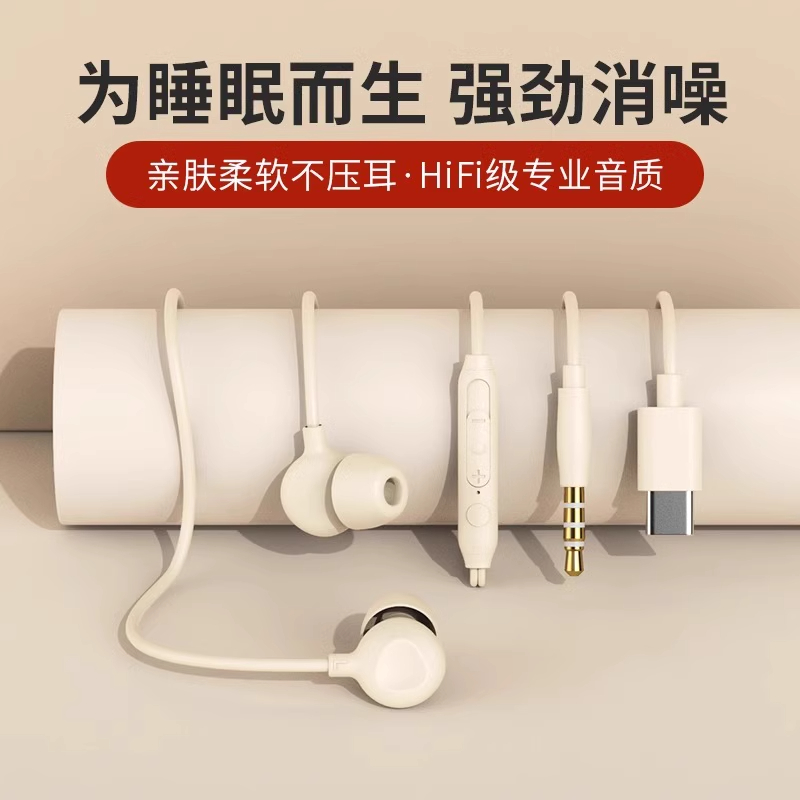 睡眠耳机有线入耳式侧睡觉专用type-c降噪助隔音高音质圆孔不痛