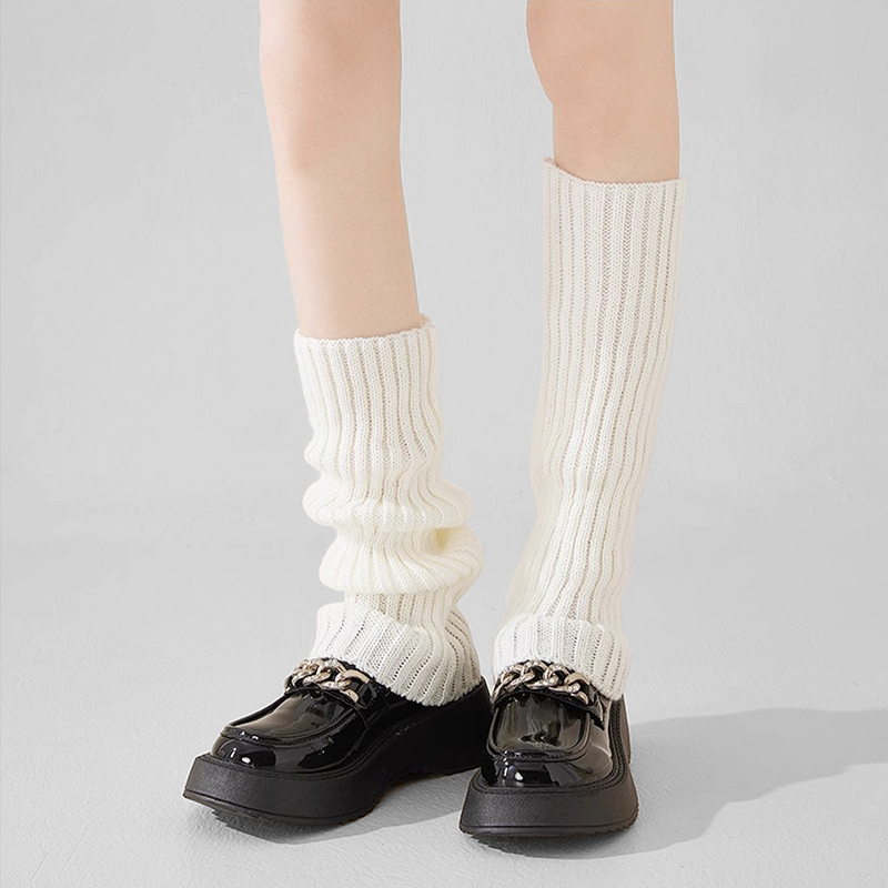 腿套女士灰色袜套堆堆袜春秋黑白色中筒袜纯棉小腿长袜搭配小皮鞋