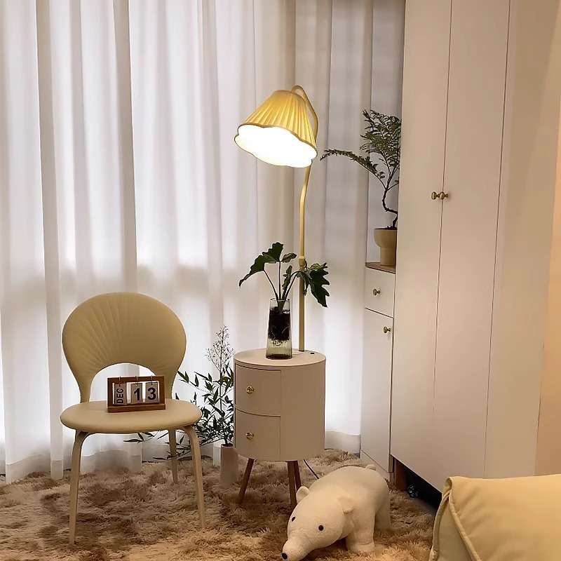 奶油风卧室床头柜台灯一体客厅沙发旁边的落地灯高颜值茶几带灯
