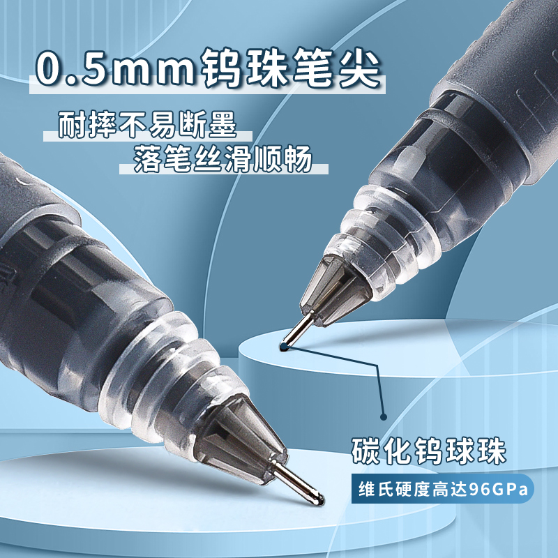 得力直液式走珠笔速干大容量直液笔0.5黑色中性笔学生用速干刷题笔水性笔直液笔圆珠笔商务办公简约风笔杆