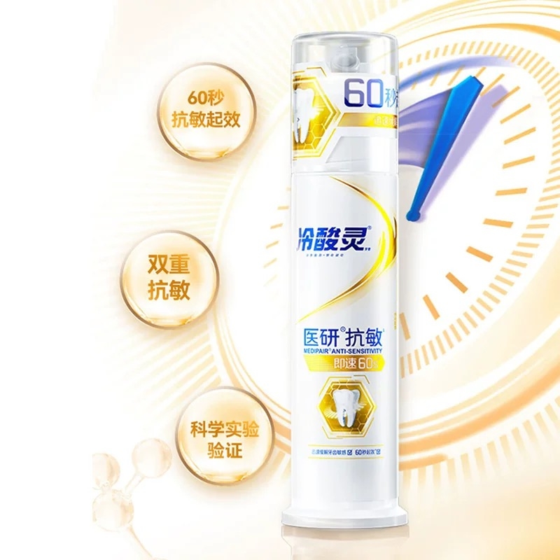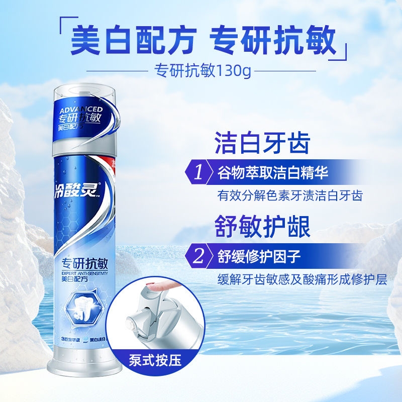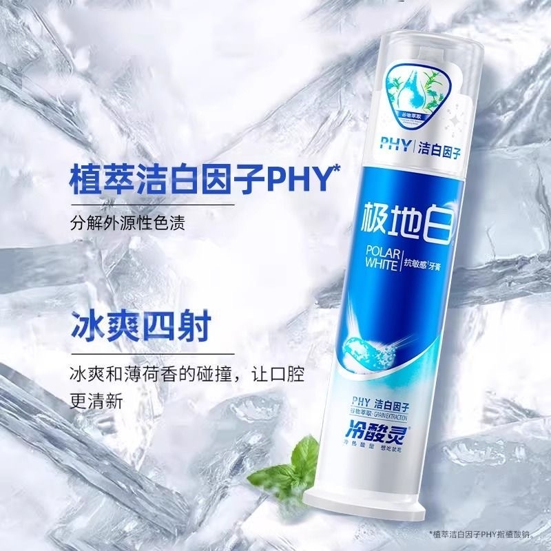 冷酸灵牙膏美白医研抗敏即速60s极地白泵式成人按压式清新牙膏