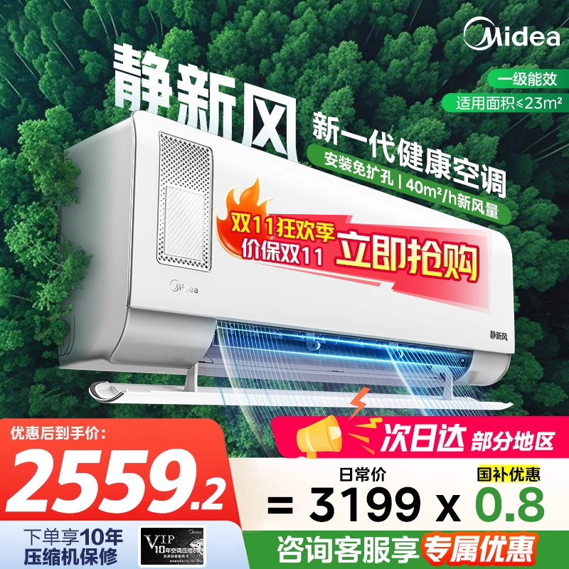 美的静新风空调1.5匹1p空气净化一级变频冷暖家用挂机官方旗舰店