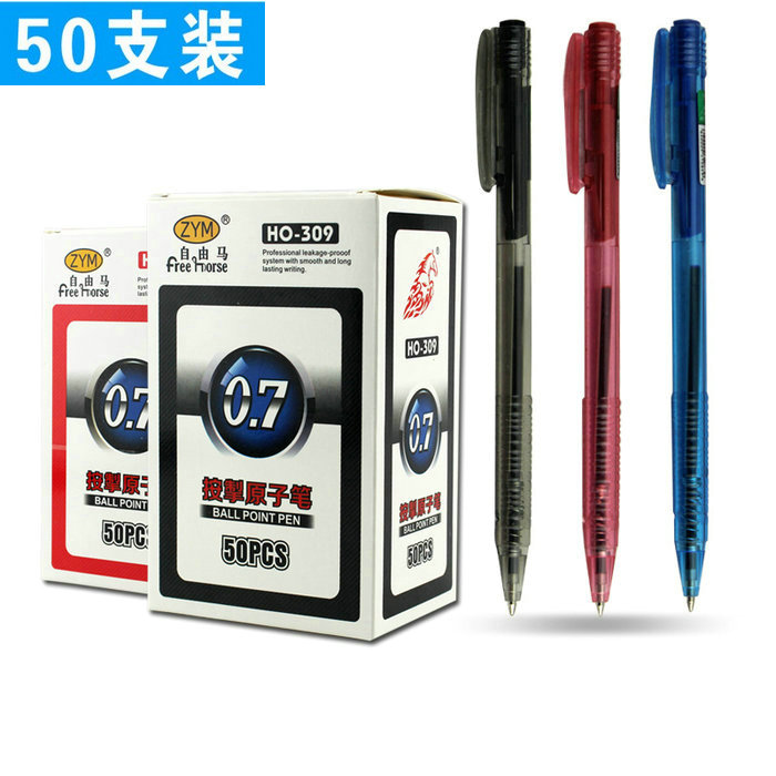 自由马按动圆珠笔309书写0.7MM黑色蓝色红色油性卡通伸缩笔笔包邮