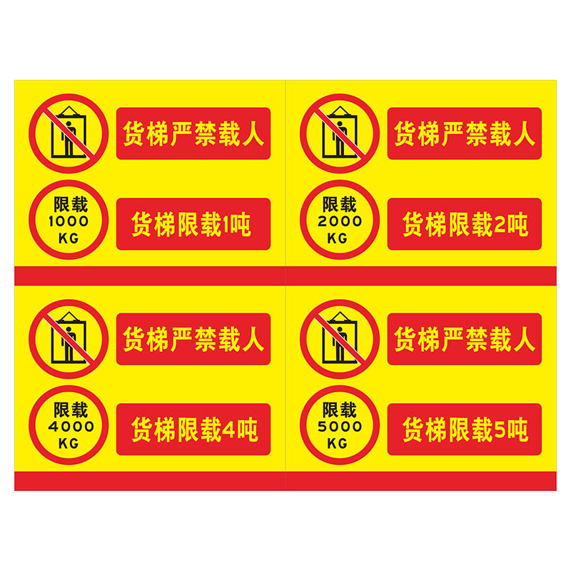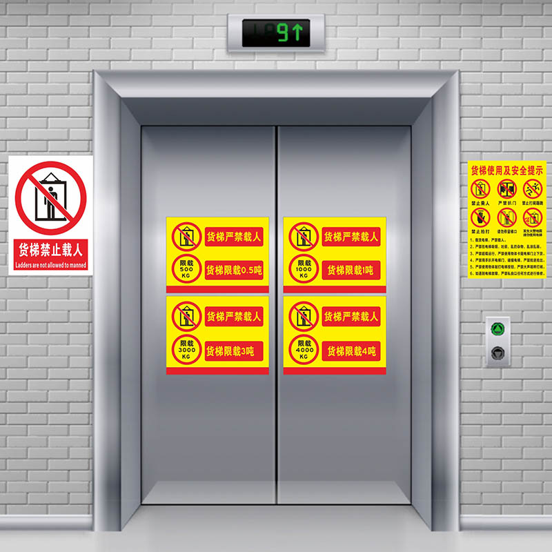 货梯严禁载人限重2吨安全警示标牌禁止货梯运行时乘人载人电梯使用安全提示牌PVC板铝板警告标志提示贴纸定制