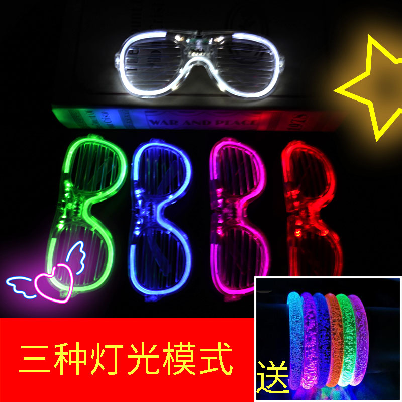 蹦迪眼镜夜光男女发光爆闪墨镜酒吧夜店抖音网红装备闪光led神器