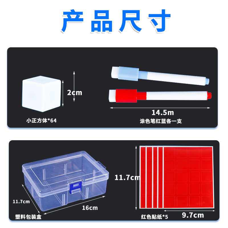 表面涂色的磁性正方体27个小方块立方体磁吸式六面磁性从不同方向观察物体主视图左视图俯视图
