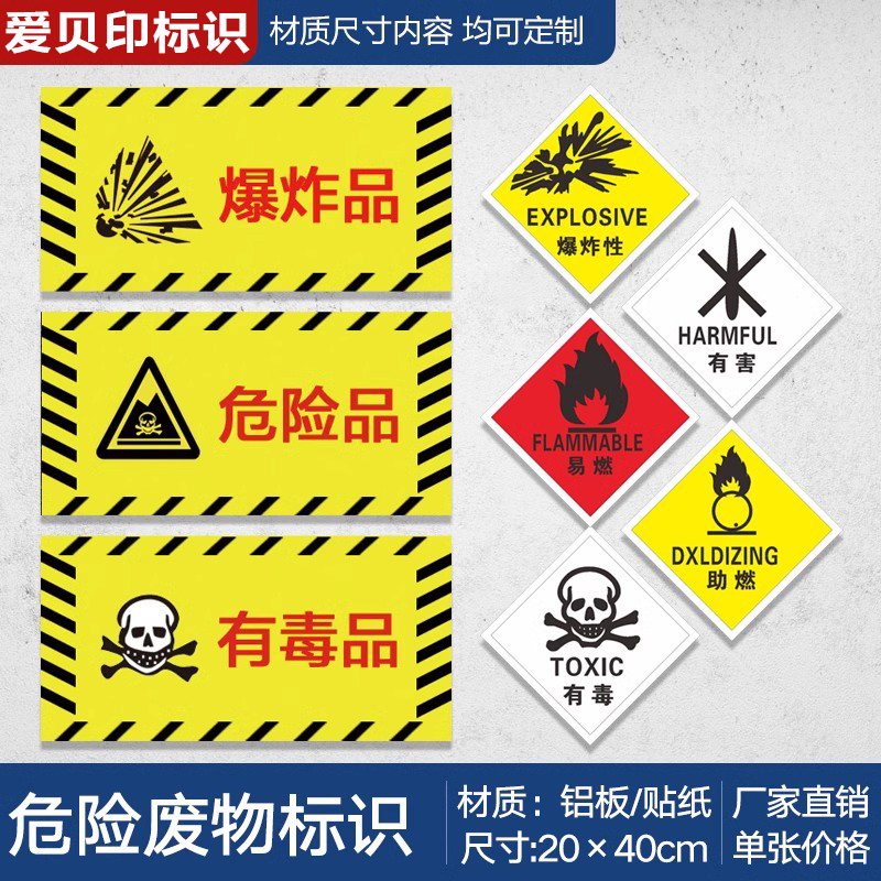 标志牌危险品标识牌腐蚀品提示牌 酸碱告知牌有毒易燃标识支持定制危险性腐蚀性易燃性质标签支持定制