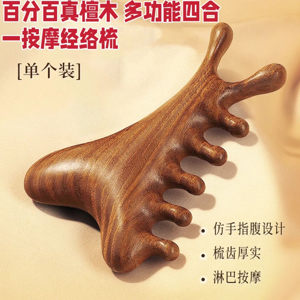 4合一多功能檀木梳头皮按摩梳子头部头疗疏通经络神器脸部眼部