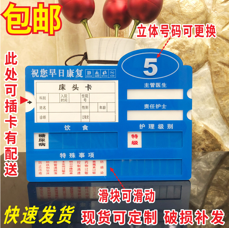 新款亚克力大号医院病房护理床头牌病人床号牌医院护理床头卡护理级别牌指示牌标识牌墙贴号码牌可定制