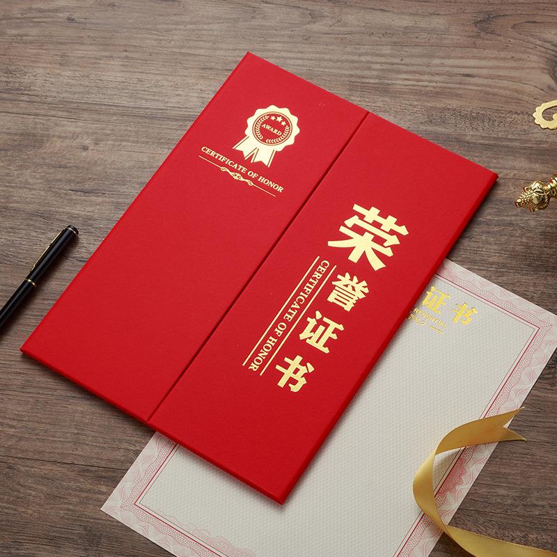 荣誉证书A4中式创意三折证书放A4内芯高档获奖证书三折荣誉证书定制