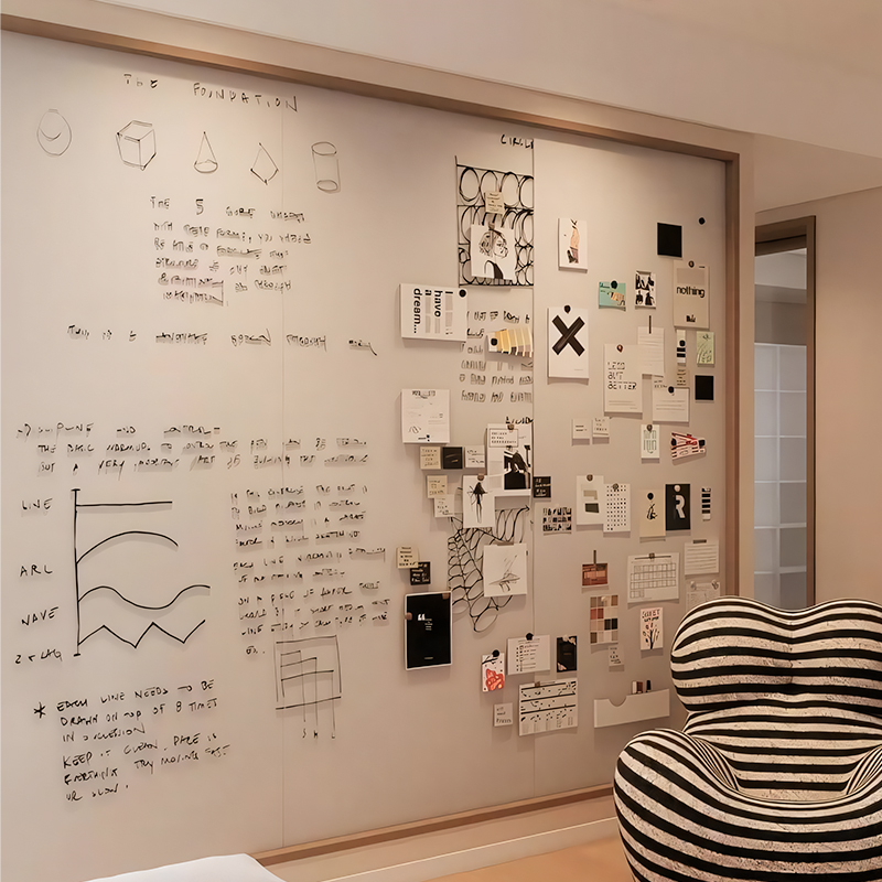 双层磁性哑光白板珐琅板墙面大磁吸写字板墙贴家用儿童涂鸦画画板磁力平替收纳可擦珐琅版教学投影照片墙定制