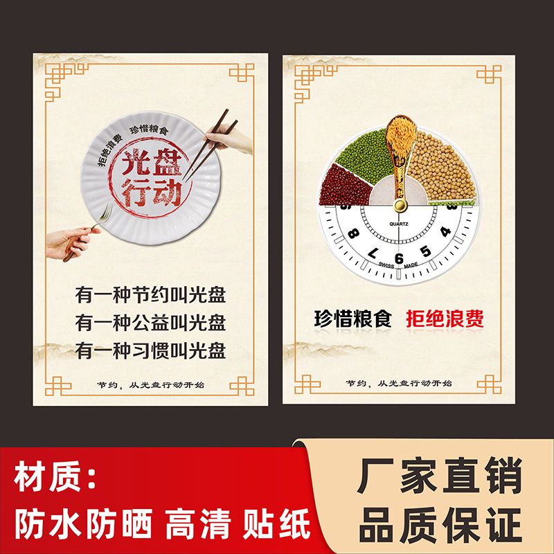 珍惜粮食节约粮食贴纸校园餐厅食堂文化倡导光盘行动节约粮食宣传标语文明用餐温馨提示警示牌上墙贴自粘定制