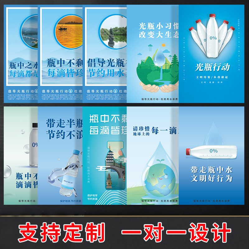 文明节约用水高清印刷海报高清贴纸宣传海报倡导光瓶行动杜绝用水浪费墙贴警示提示标志桌牌