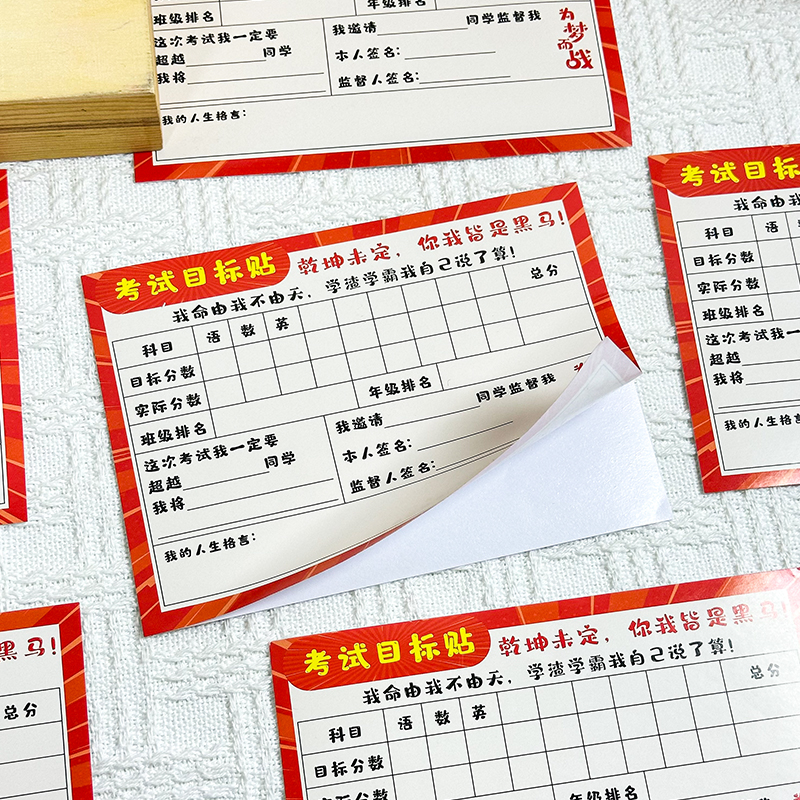 创意初中生月考试目标不干胶贴纸定制励志文字贴学生期中成绩计划挑战卡班级管理神器桌面书本激励学习小贴画