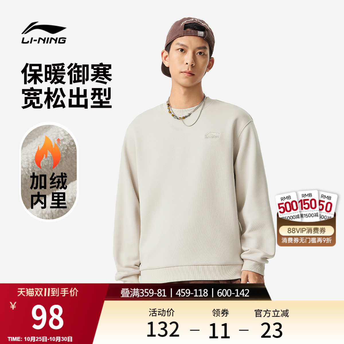 李宁加绒卫衣男士秋冬新款保暖圆领长袖情侣内搭上衣休闲运动服女