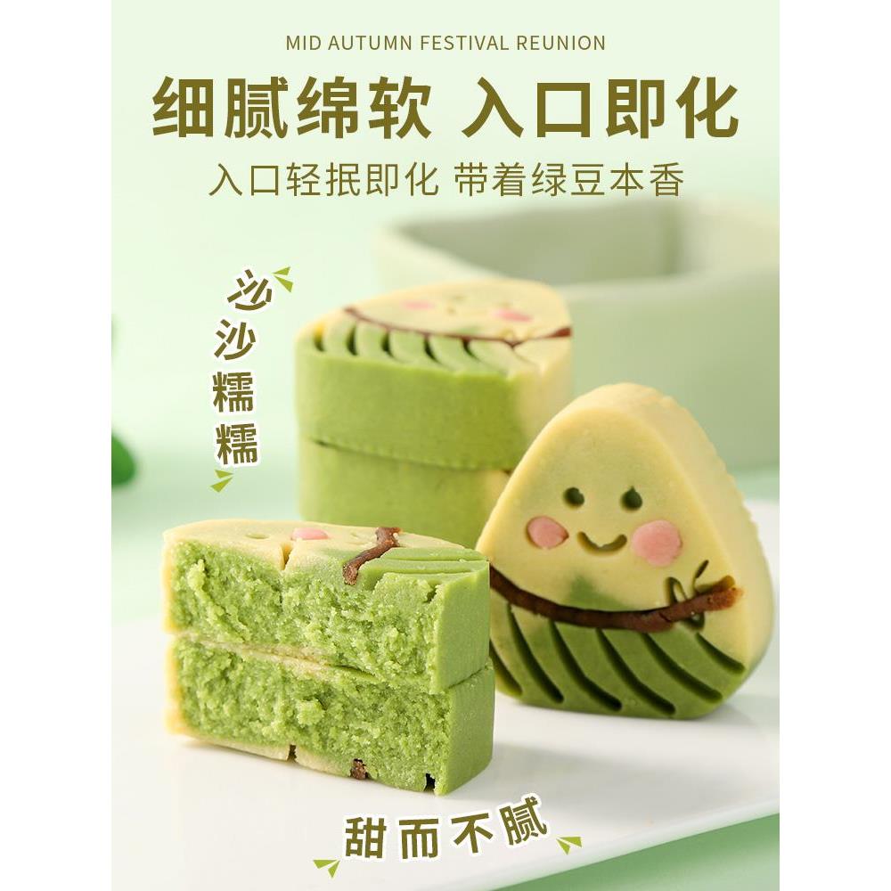 新中式端午节绿豆糕饼卡通可爱儿童学生早餐茶点心零食办公室散装