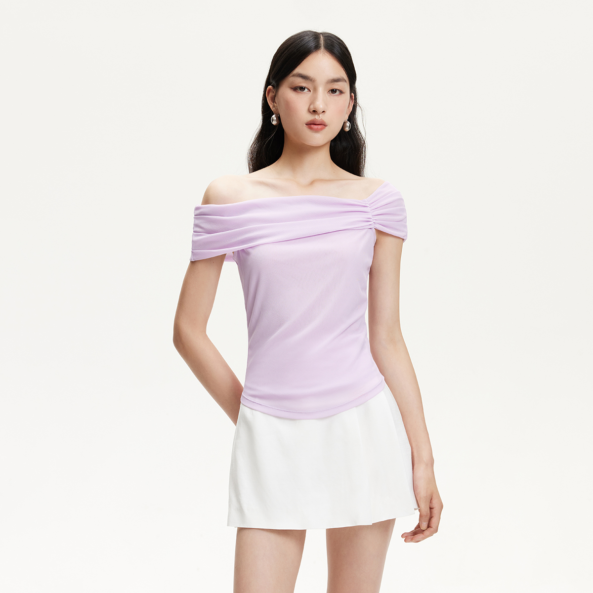 Vero Moda奥莱T恤女2025夏季新款轻薄微透不对称领口设计短袖上衣