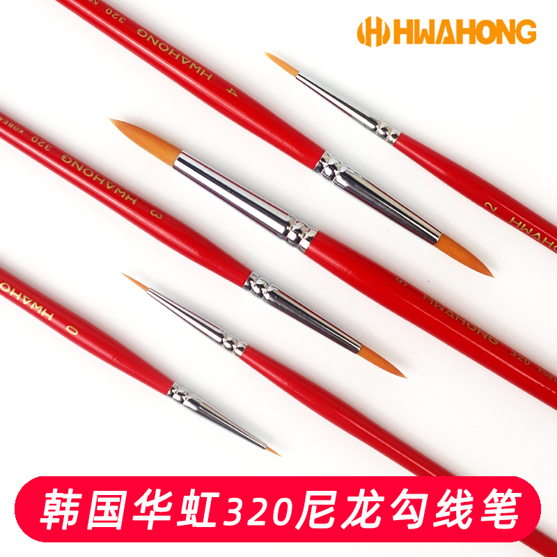 韩国Hwahong/华虹320尼龙毛圆尖头水彩笔油画笔勾线笔美妆眼线笔刷1号画卧蚕粘亮片尼龙画笔水粉描边美术专用