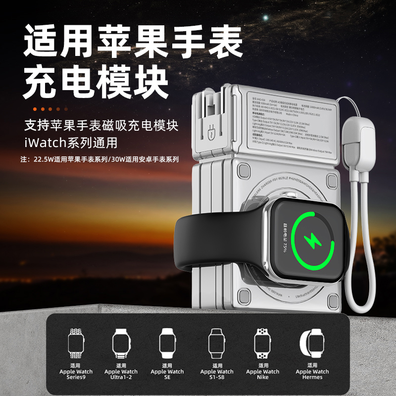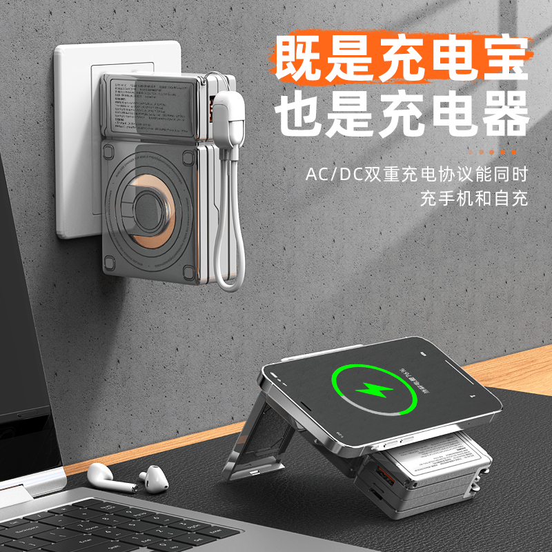 自带ac插头磁吸无线充充电宝自带线五合一超级快充10000毫安大容量移动电源适用苹果16promaxiPhone14/15手表