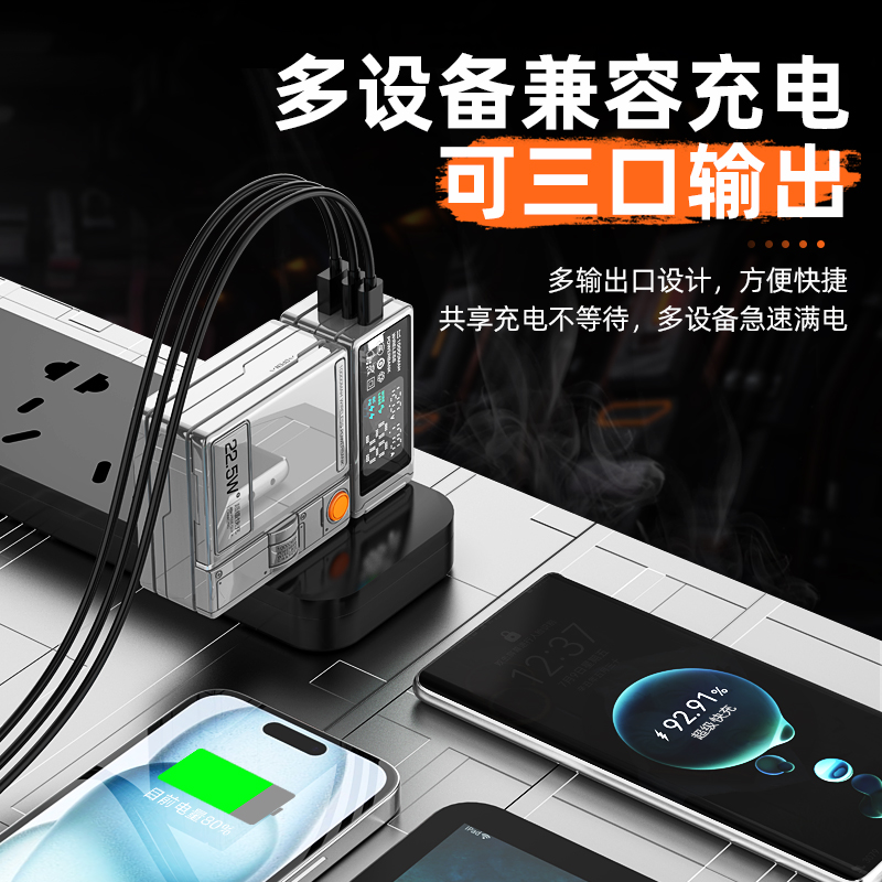 图拉斯小方块自带双线充电宝3C认证可上飞机2025新款快充45W大容量移动电源小巧标识便携带适用苹果/华为手机