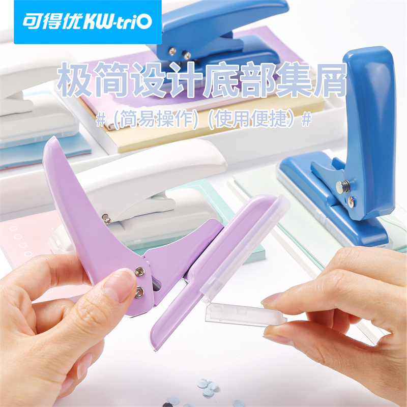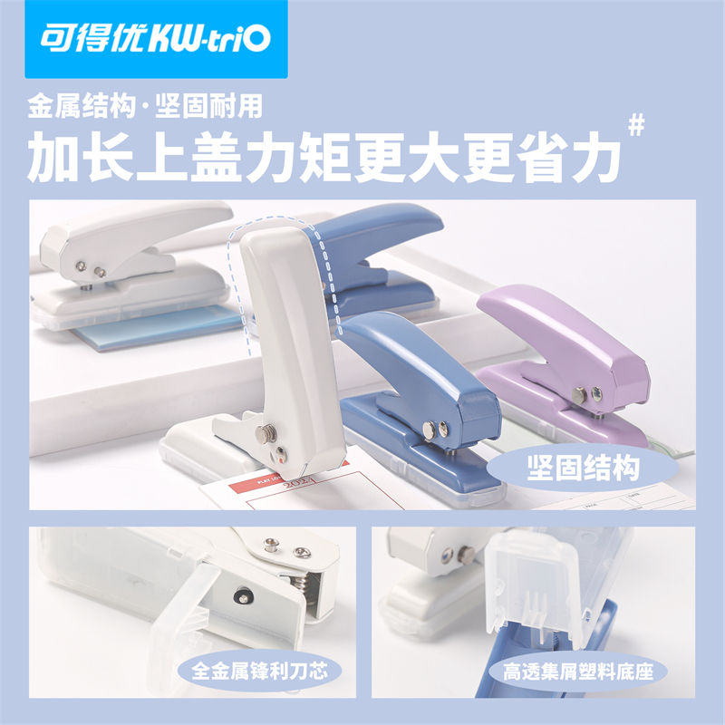 可得优升级款加大号打孔器40张加厚单孔打孔机学生活页本绑带圆孔开孔神器全金属材质省力型pvc硬卡片打洞机