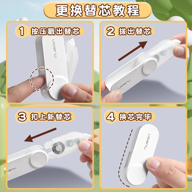 得力大容量可替换芯简约按动顺滑多功能初中生笔式纽赛旋转出芯修正带静音折叠不易断带高颜值改正带涂改带