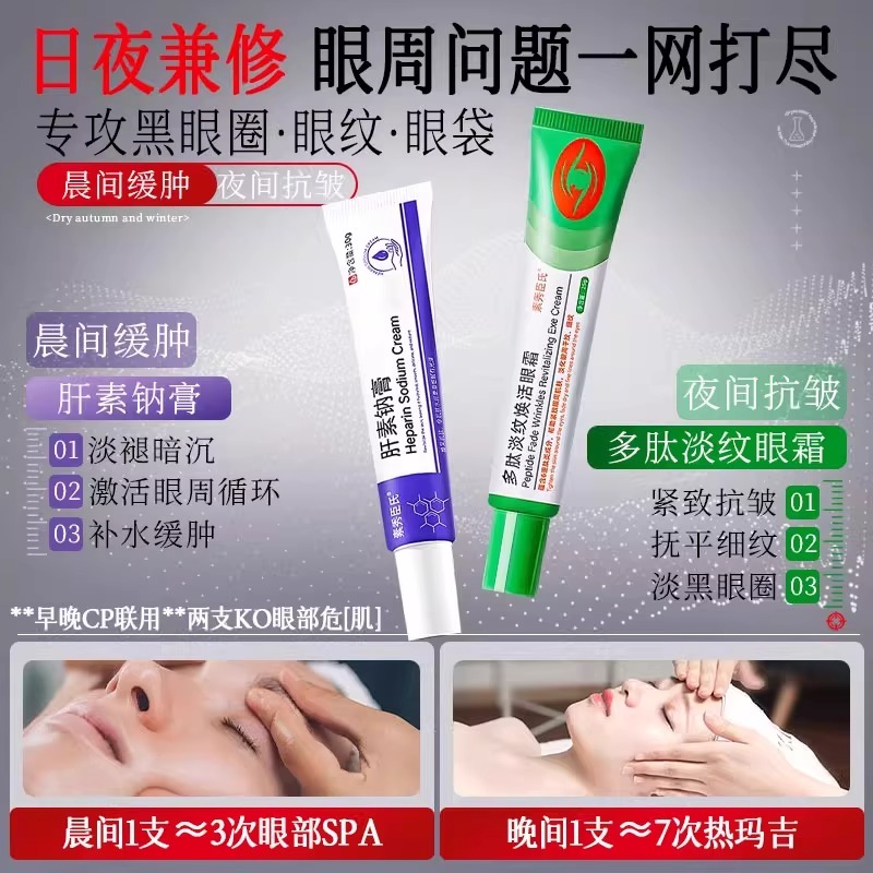 肝素钠膏正品多肽淡纹焕活眼霜淡化黑眼圈眼袋紧致抗皱纹提拉早晚