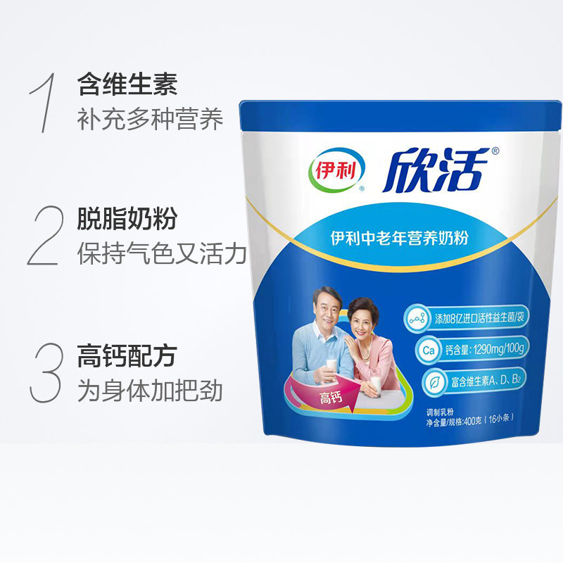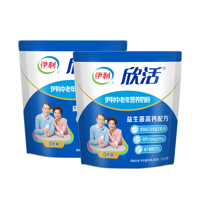 伊利奶粉欣活中老年营养高钙0蔗糖成人中年老年人益生菌早餐牛奶