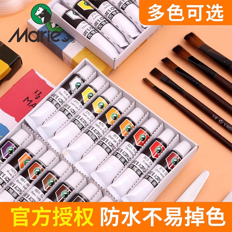 马利牌丙烯颜料套装36色小盒装初学者美术生专用画画涂色油彩小支丙烯防水防晒不掉色24色丙烯颜料套装