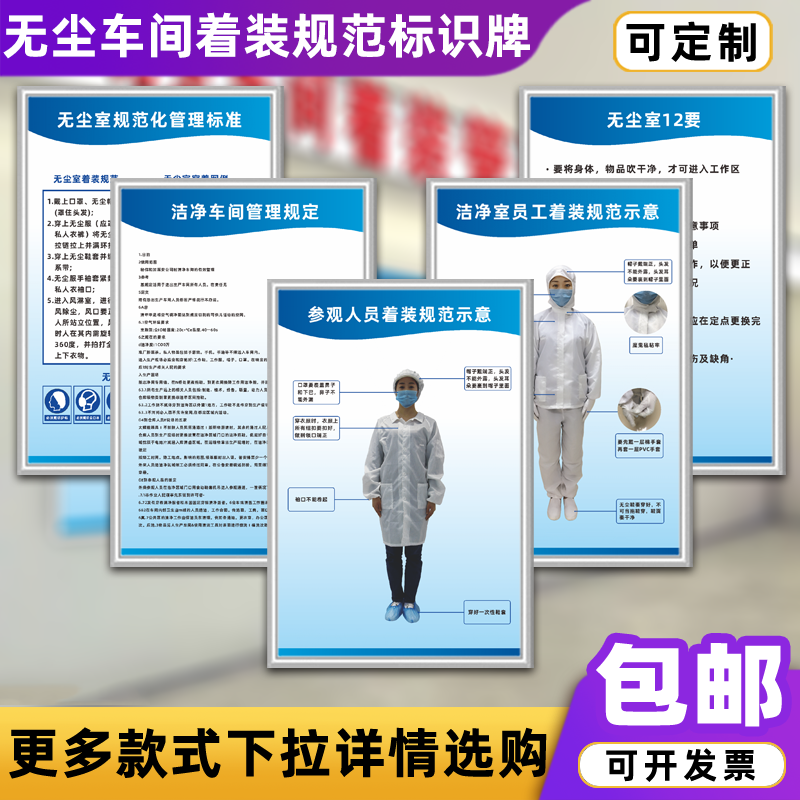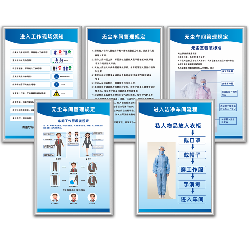 无尘车间着装规范管理标识牌无尘车间管理制度无尘室无尘间行为穿着规范图无尘室12条流程图进入洁净车间流程