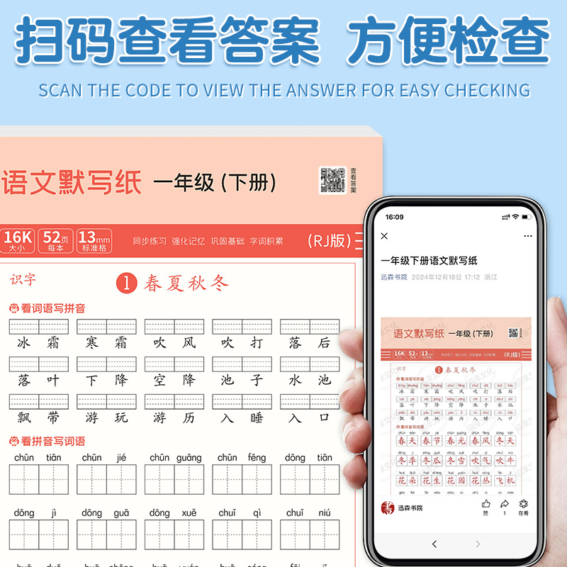 一二三年级语文课堂默写纸人教版看拼音写词语一课一练字帖课本同步生字词语积累练习纸上下册单元检测听写纸